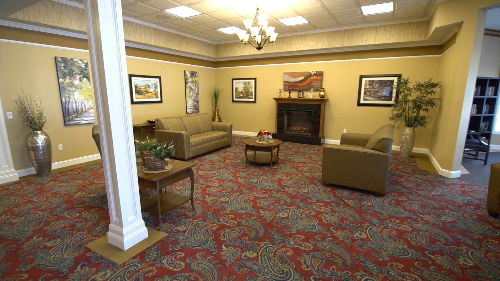 - Multiple home-like areas for residents to engage with others, including television room, reading room, activity room, home-style resident kitchen, common area with fireplace, and a larger group activity area