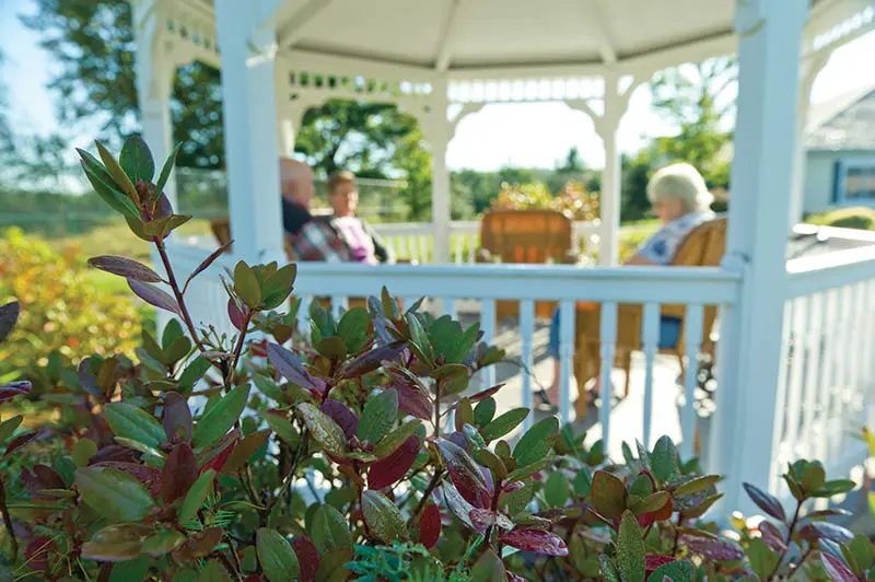 - Expansive outside courtyard with walking paths, gardens and gazebo