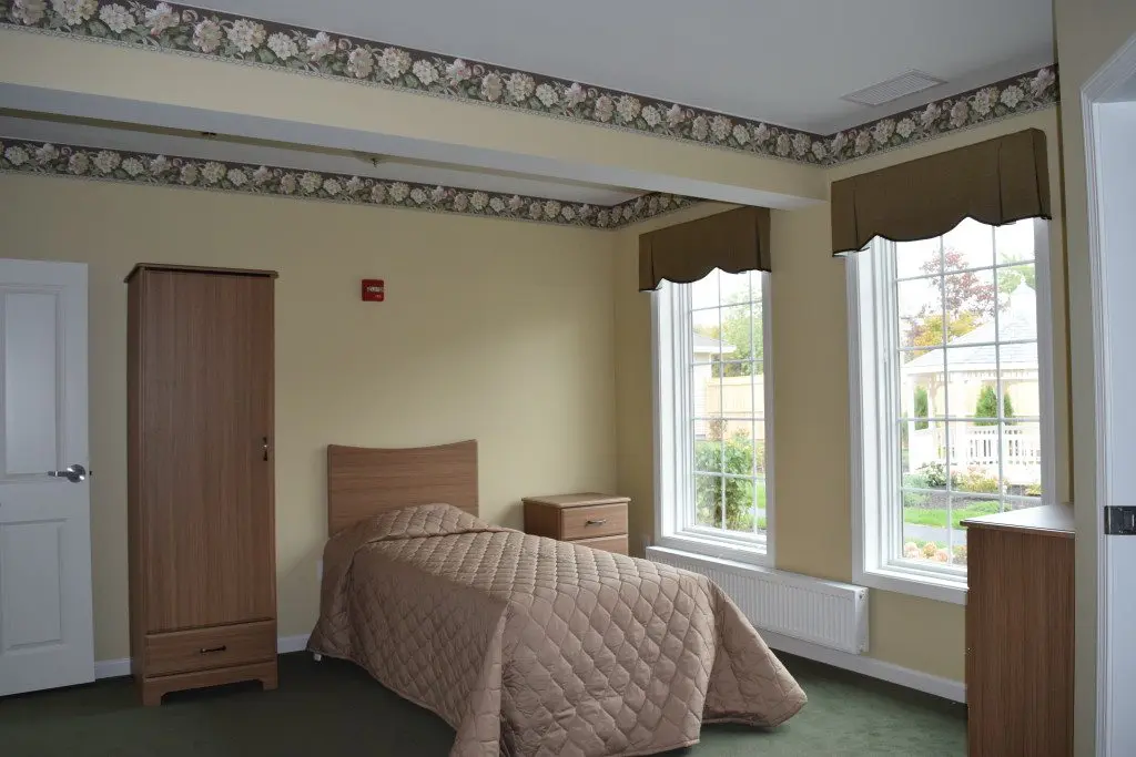 Because individuals with memory impairments may benefit from either option, the community features 28 private rooms and 18 double-occupancy rooms. For some individuals who experience anxiety when living alone, the comfort of having a roommate may help.