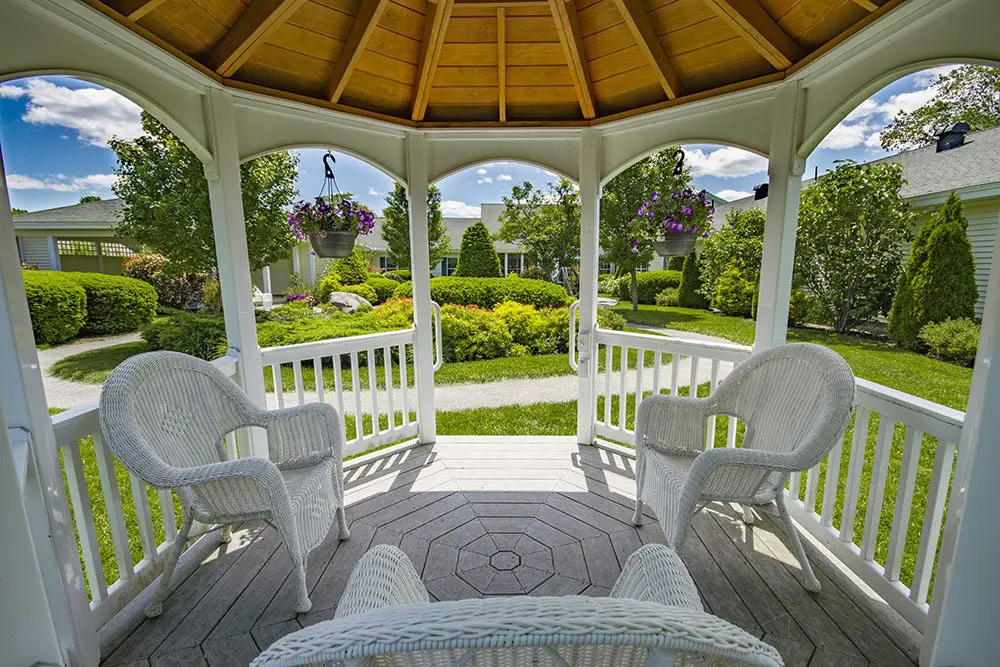 - Spacious, secured courtyard with walking paths, gardens, gazebo and outdoor dining area