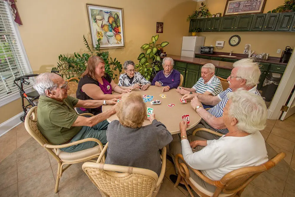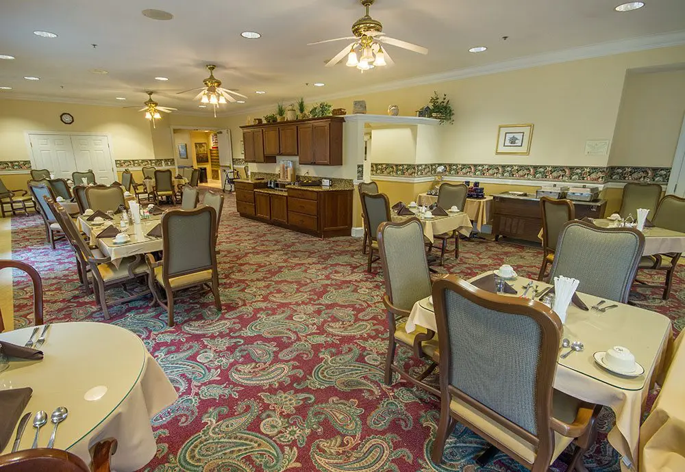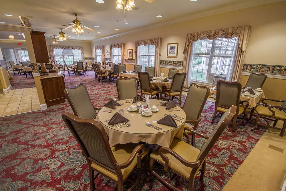 - Multiple areas for residents to engage with others, including a television room, reading room, activity room, home-style resident kitchen, formal dining room and large group activity area